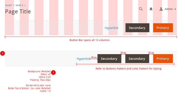 - The buttons within the button bar must be one of the page-level buttons from buttons pattern.