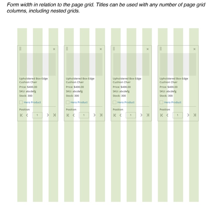 This topic contains examples of the Tile pattern used in the Admin with functions for single selection, multi selection, drag and drop, and editing inline position. For solutions not described in this article, please refer to other related patterns or contact the Commerce UX Design team.