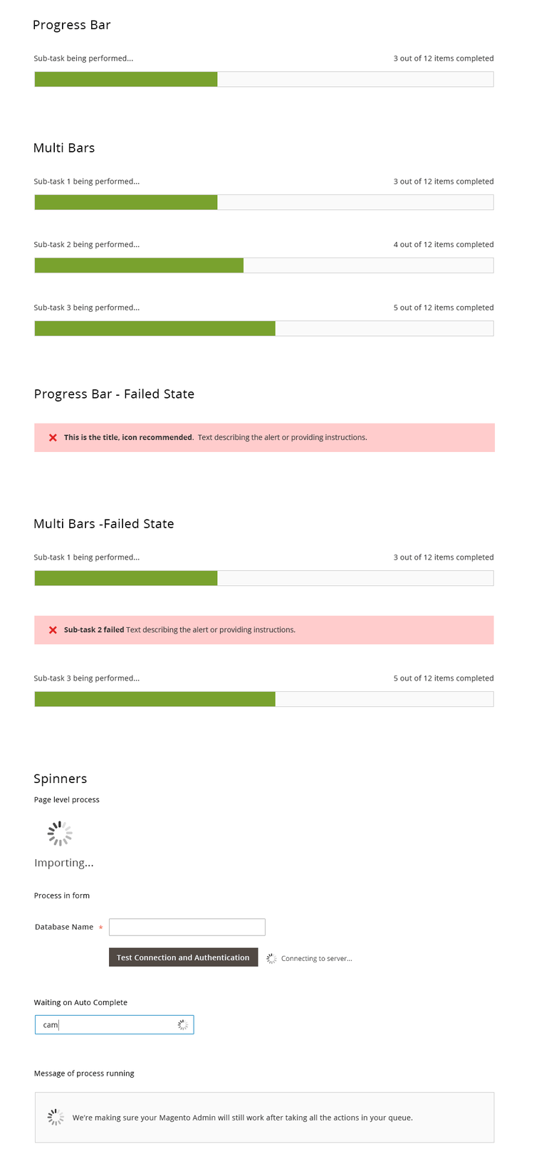 In general, it is not recommended to use the progress bar if the process can be completed under 3 seconds. To avoid flickering, the minimum time displayed of progress bar should be 3 seconds.