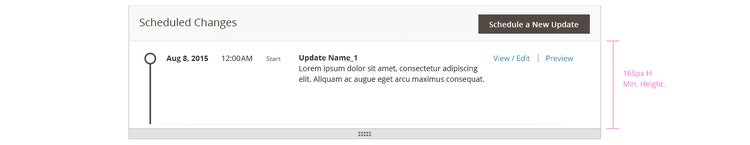 When a single update is scheduled, the module's default height is the same as the Multiple Updates View. Users can re-size the module, using the dragger at the bottom of the module.