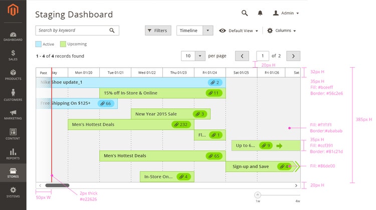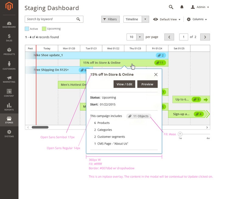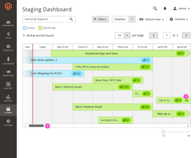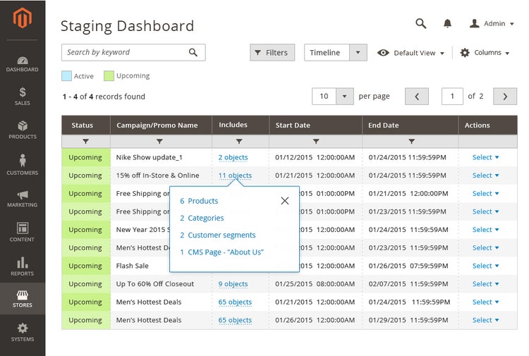 Staging usage: Users need to see which stage-able entities are published or scheduled to be published. Since most of the application's entities can be staged – the display of all this information is important to show users the full scope of updates at a glance.