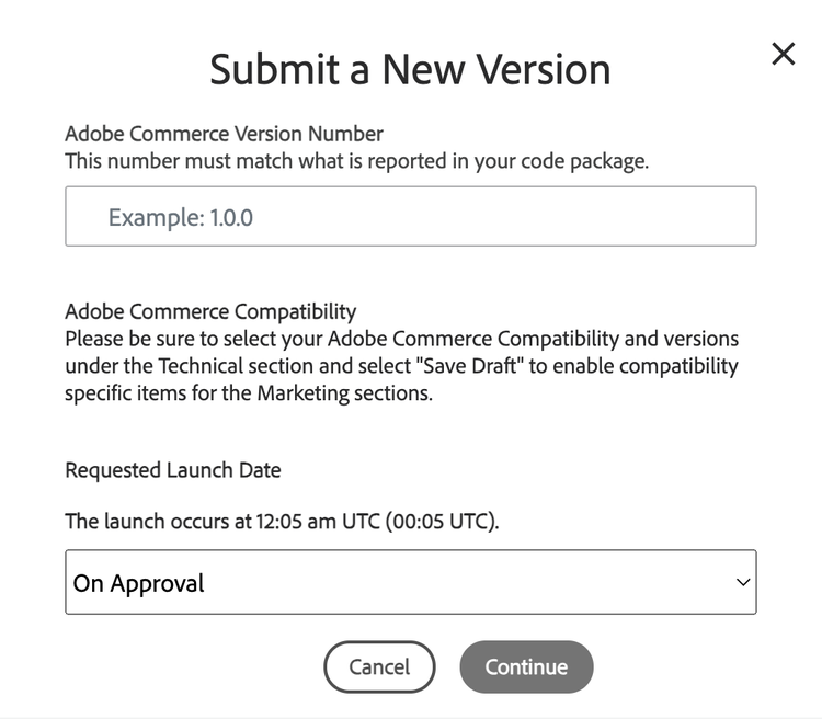 - On Approval - Immediately publishes when the extensions receives Commerce Marketplace approval.