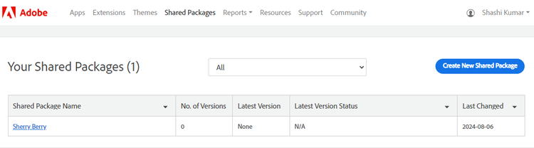 The process to submit a shared package to Commerce Marketplace is basically the same as submitting an extension. The only difference is that it takes place from the Shared Packages tab.