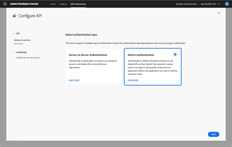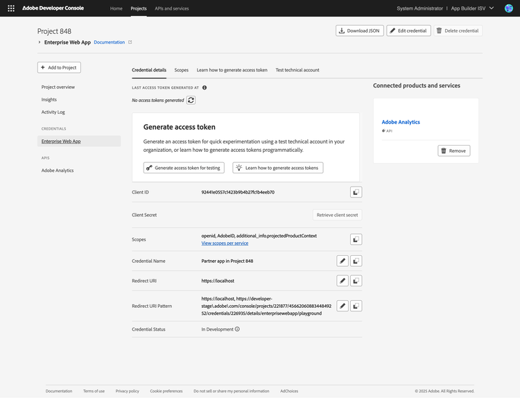 - If you're a developer or system admin on an Adobe Technology Partner program partner org, you can log in to the Adobe Developer Console and visit the APIs and Services page.