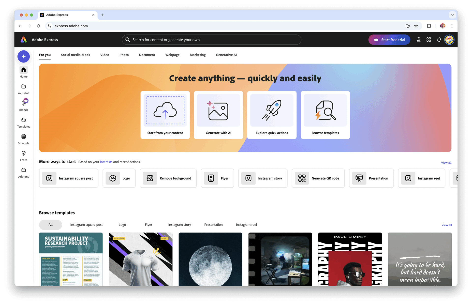 - Open Adobe Express in your browser and click the avatar icon in the top right corner.