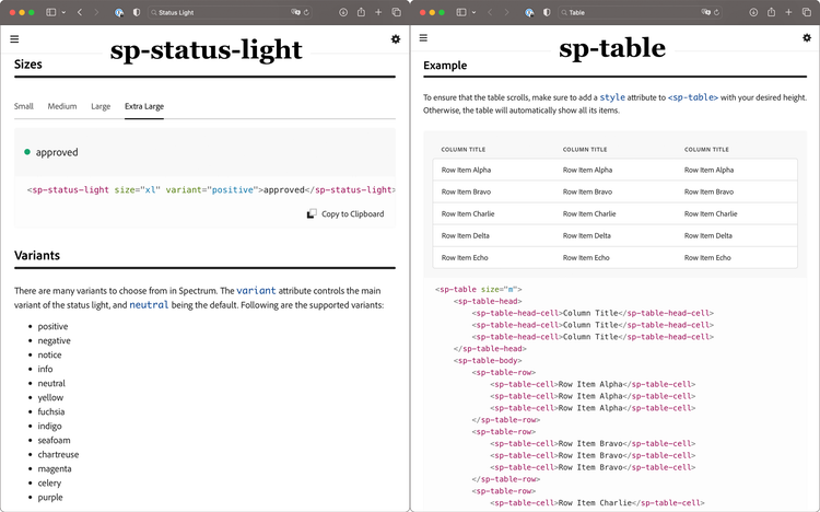 <sp-table>has aselectsand aselectedattributes that you can put to use. - Save Snapshots: using the Client Storage API, you can keep track of the document's metadata and compare it with previous versions.