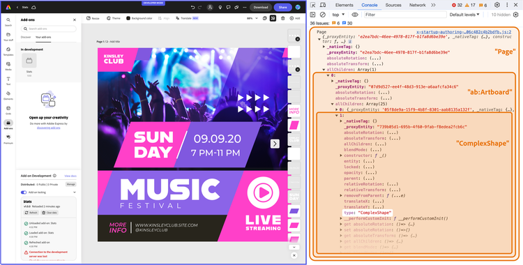 Hello, and welcome to this Adobe Express Communication API tutorial, where we'll build together a fully functional Stats add-on from scratch. This add-on will retrieve metadata from the currently open Adobe Express document, such as pages and their size, plus information about the kind and number of any element used.