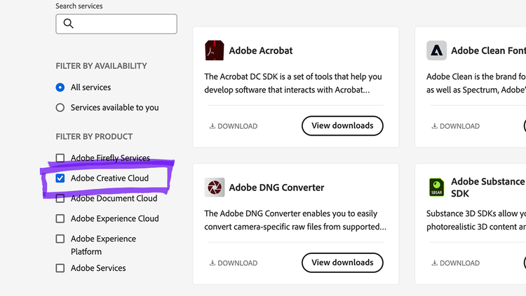 If you’re having trouble accessing developers.adobe.com/console, you can still download SDKs and documentation for Creative Cloud products. Read on for a workaround, as well as how to get access.